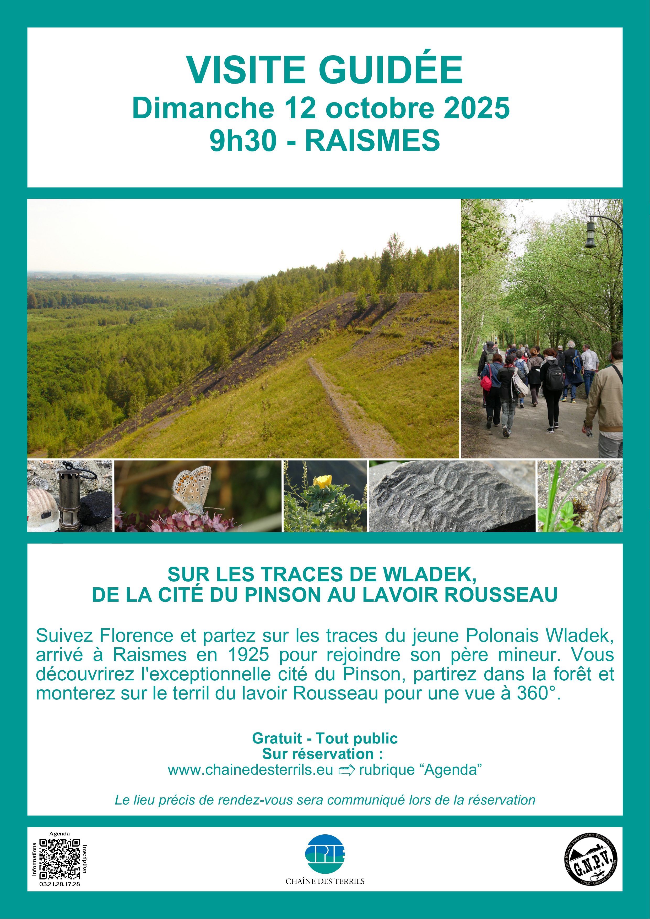 Partez à la découverte du destin de Wladek, jeune Polonais arrivé à Raismes en 1925 pour rejoindre son père, mineur. En compagnie de Florence, guide passionnée, vous explorerez la remarquable cité du Pinson, traverserez la forêt et gravirez le terril du lavoir Rousseau pour profiter d’une vue panoramique à 360°.